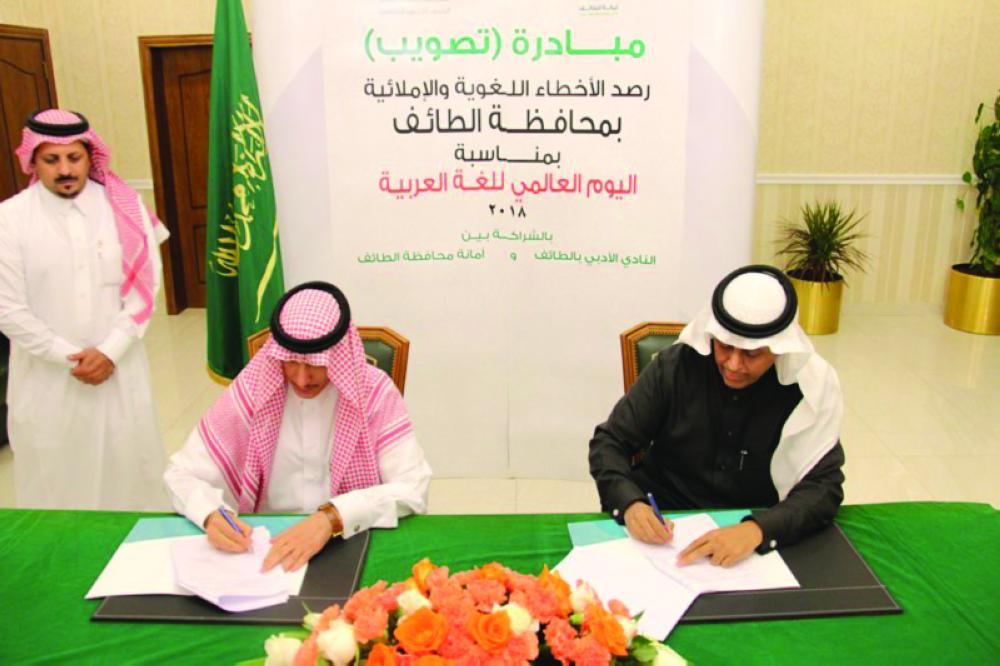 وقع أمين الطائف المهندس محمد آل هميل بمقر الأمانة، مع رئيس نادي الطائف الأدبي الثقافي عطا الله الجعيد اتفاقية المبادرة التطوعية «تصويب» في تعاون مشترك بين النادي والأمانة، والتي تتزامن مع «اليوم العالمي للغة العربية 2018» الذي يصادف 18 ديسمبر من كل عام.
