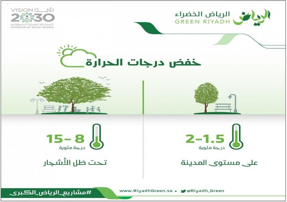 ولمشروع الرياض الخضراء تأثيراً مناخياً وعوائد إيجابية تسهم في تحسين جودة الحياة ومن أبرز العوائد المناخية للمشروع: