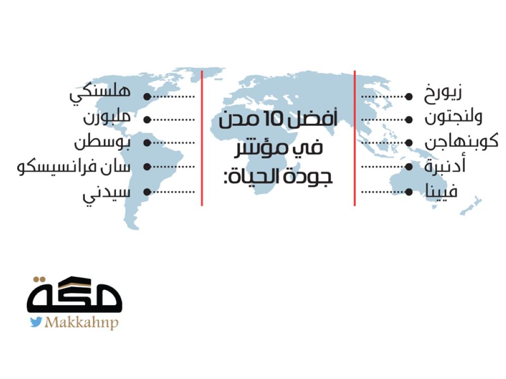 أفضل 10 مدن في مؤشر جودة الحياة: