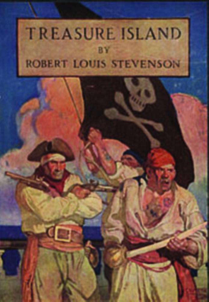 قرصان تقليدي، له ببغاء ويبحث عن كنز مدفون في جزيرة