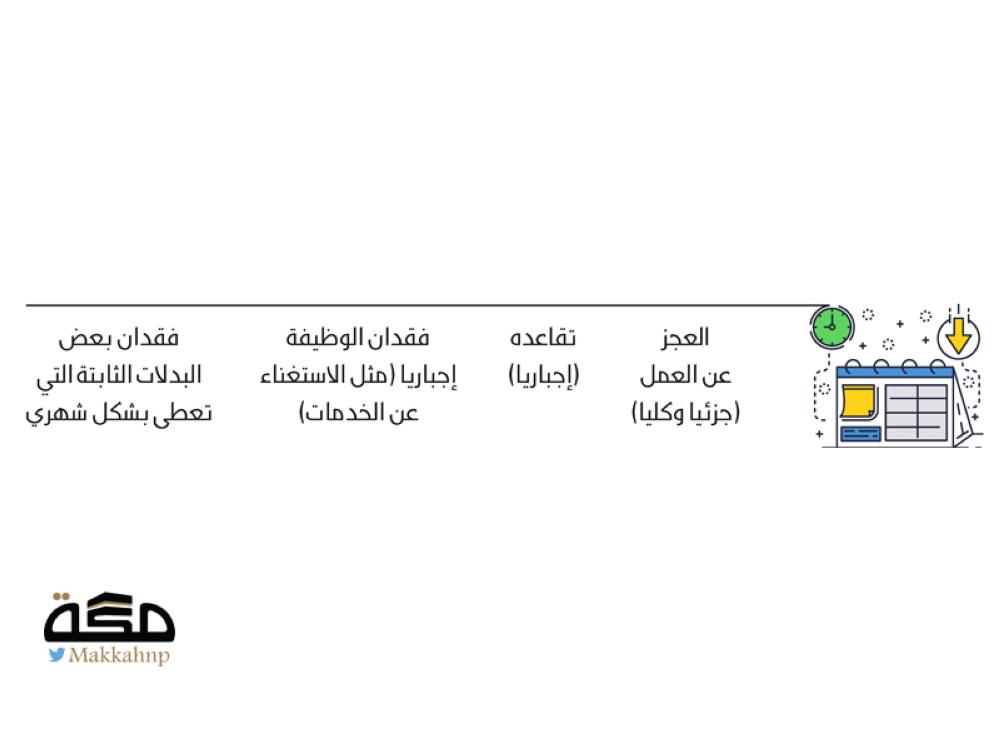 • فقدان الوظيفة إجباريا (مثل الاستغناء عن الخدمات)