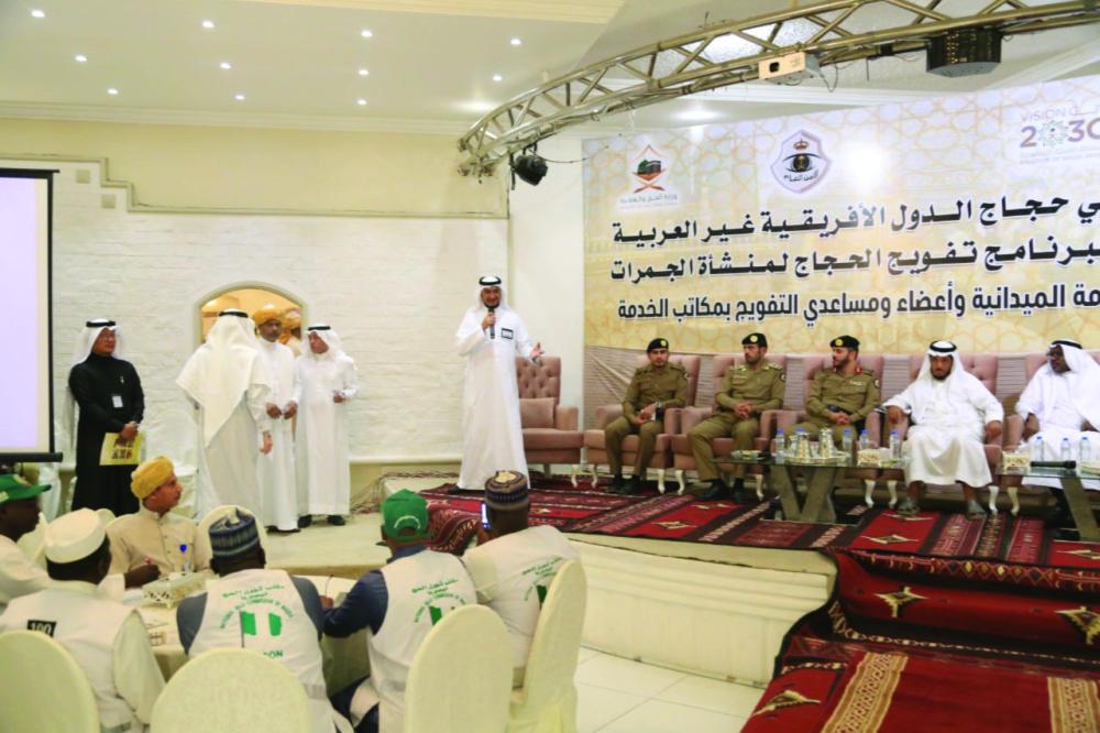 ونوه خلال اللقاء السنوي لبرنامج تفويج الحجاج لمنشأة الجمرات والتطويف المركزي لرؤساء وأعضاء التفويج بمكاتب الخدمة الميدانية بمؤسسة مطوفي حجاج الدول الأفريقية غير العربية ومكاتب شؤون الحجاج، بأهمية الالتزام بالأوقات والمسارات المحددة لضمان سلامة الحجاج ومراعاة التوقيتات المرحلية للانتقال من مزدلفة إلى منى وتفويج الحجاج إلى مخيماتهم ومنها إلى منشأة الجمرات لتأدية شعيرة الرمي.