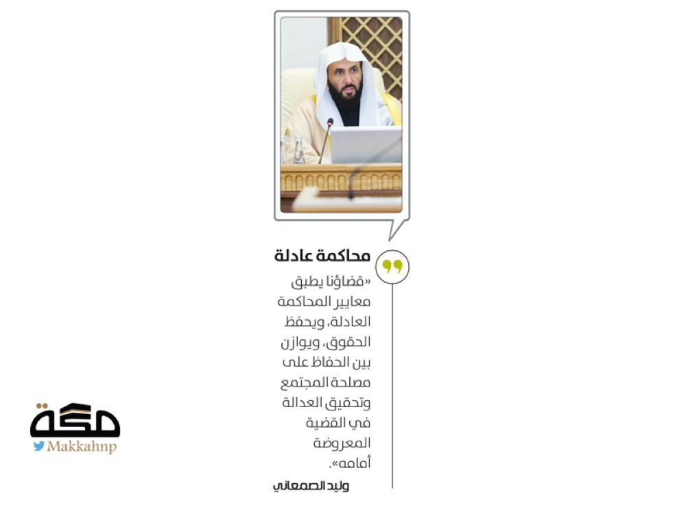 «قضاؤنا يطبق معايير المحاكمة العادلة، ويحفظ الحقوق، ويوازن بين الحفاظ على مصلحة المجتمع، وتحقيق العدالة في القضية المعروضة أمامه».