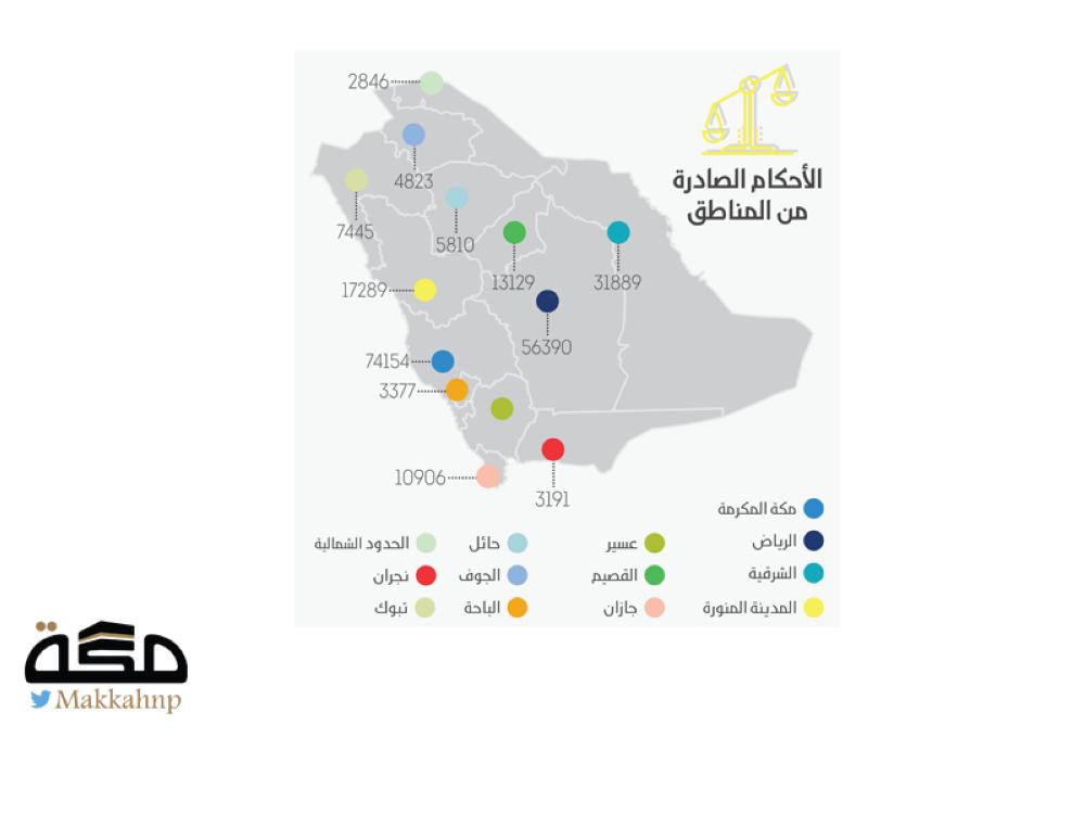 أصدرت محاكم الأحوال الشخصية نحو 250 ألف حكم خلال العام الهجري الماضي، وتصدرت محاكم منطقة مكة المكرمة القائمة بـ 74154 قضية، وسجلت الحدود الشمالية أقل القضايا في المناطق في نفس الفترة بـ2846 قضية.