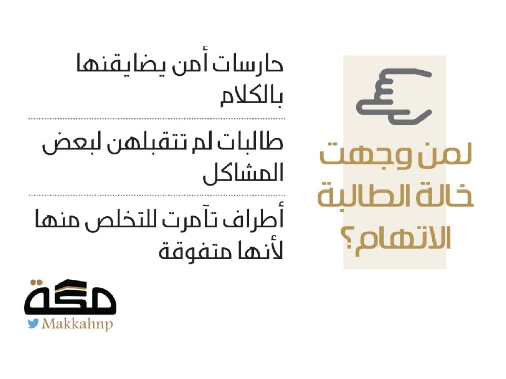 وأضافت «لكن حدث ما حدث، ابنة أختي كانت تشتكي من بعض حارسات الأمن لمضايقتها بالكلام والتدقيق عليها حتى ببطاقتها الجامعية، إضافة إلى بعض الطالبات اللاتي لم تتقبلهن لبعض مشاكل يقمن بها».