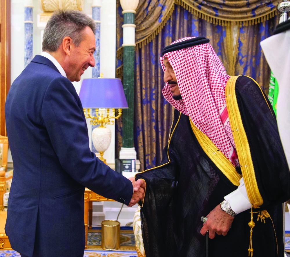 استقبل خادم الحرمين الشريفين الملك سلمان بن عبدالعزيز في مكتبه أمس رئيس اللجنة الدولية للصليب الأحمر بيتر ماورر، والوفد المرافق له.