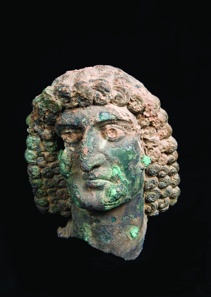 • رأس تمثال مجوف من البرونز يعود للقرن الأول الميلادي عثر عليه في نجران.
