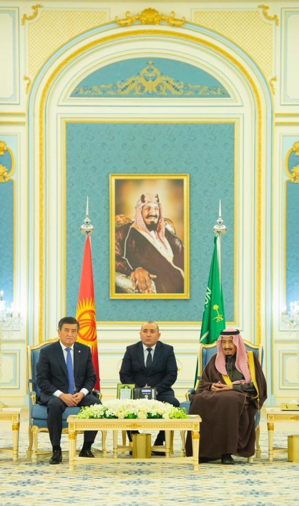 شهد خادم الحرمين الشريفين الملك سلمان بن عبدالعزيز والرئيس سورنباي جيتيبيكوف، رئيس جمهورية قرغيزستان، اليوم، توقيع 6 اتفاقيات ومذكرات تفاهم بين حكومتي السعودية وقرغيزستان.