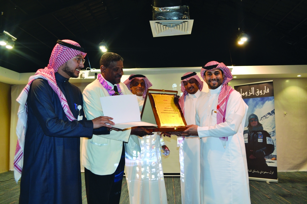 كرم مركز رشد التخصصي للخدمات المجتمعية بالطائف، المتسلق فاروق الزومان أول سعودي يتسلق قمة جبل إيفرست.
