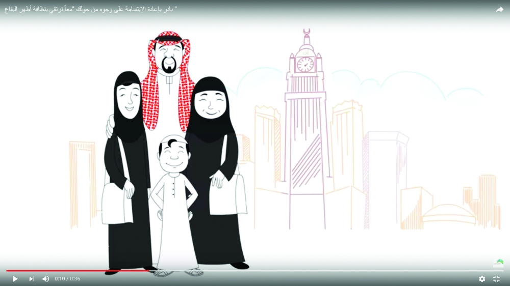 نشرت أمانة العاصمة المقدسة ممثلة في الإدارة العامة للنظافة «فيديو» توعويا يستهدف سكان مكة المكرمة، ويتناول مبادرة أطراف المجتمع للحفاظ على البيئة المحيطة، والعمل على زرع الابتسامة على وجوه الآخرين، إضافة إلى نبذ التصرفات غير السليمة كممارسة القيادة المتهورة، والتفحيط بالمركبات داخل الأحياء والشوارع، ورمي المخلفات على الأرصفة والطرق، مما يشكل منظرا غير حضاري ويعوق المارة.