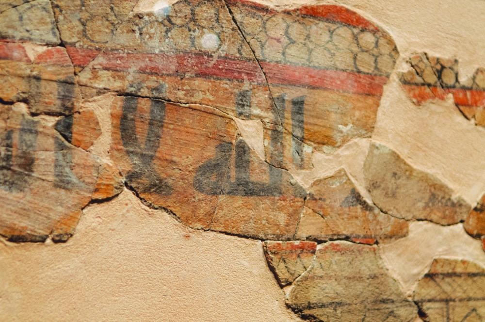 - قطعة من زخرفة جدارية تعود إلى القرن التاسع الميلادي عثر عليها في موقع الربذة بالمدينة المنورة.