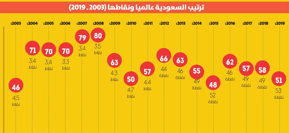 أحرزت السعودية تقدما بـ 7 مراكز عالمية في ترتيب مؤشر مدركات الفساد CPI لعام 2019، والذي أصدرته منظمة الشفافية الدولية أمس، حيث حققت المركز الـ51 عالميا من أصل 180 دولة، وتقدمت في مركزها بين مجموعة دول العشرين الاقتصادية G20 لتحقق المركز الـ10.