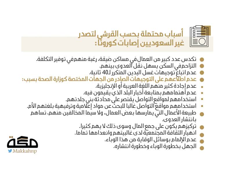 أسباب محتملة بحسب القرشي لتصدر غير السعوديين إصابات كورونا: