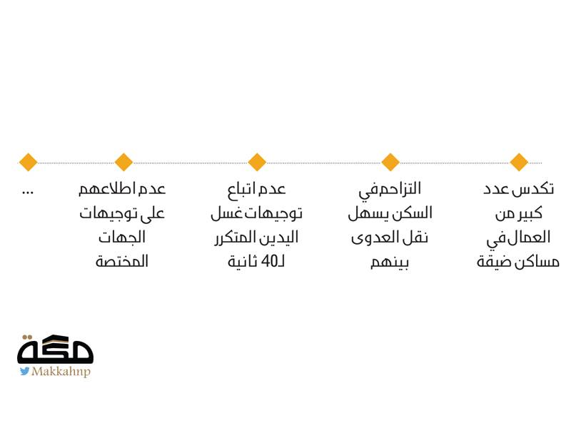 - تكدس عدد كبير من العمال في مساكن ضيقة، رغبة منهم في توفير التكلفة.