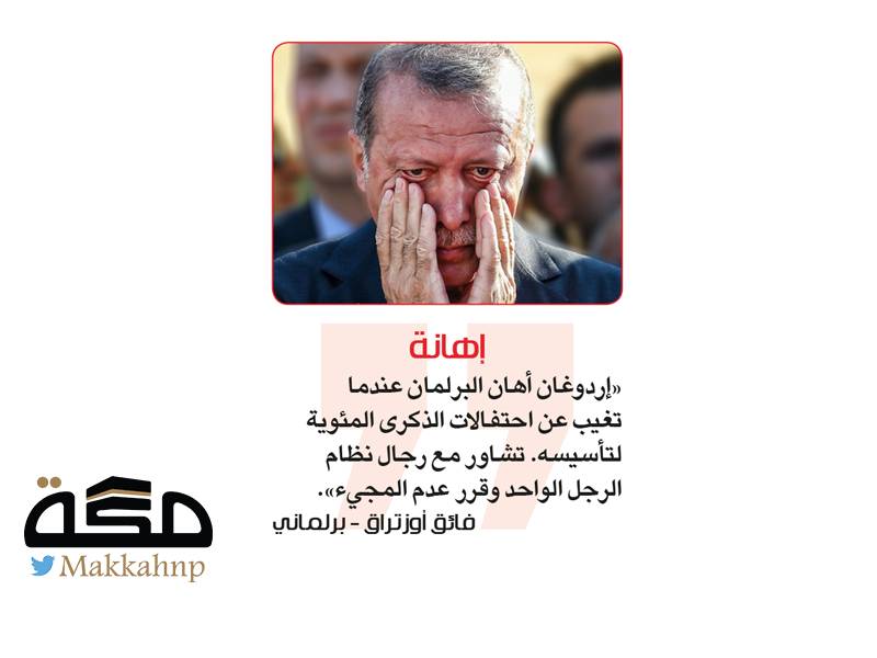 «إردوغان أهان البرلمان عندما تغيب عن احتفالات الذكرى المئوية لتأسيسه. تشاور مع رجال نظام الرجل الواحد وقرر عدم المجيء».