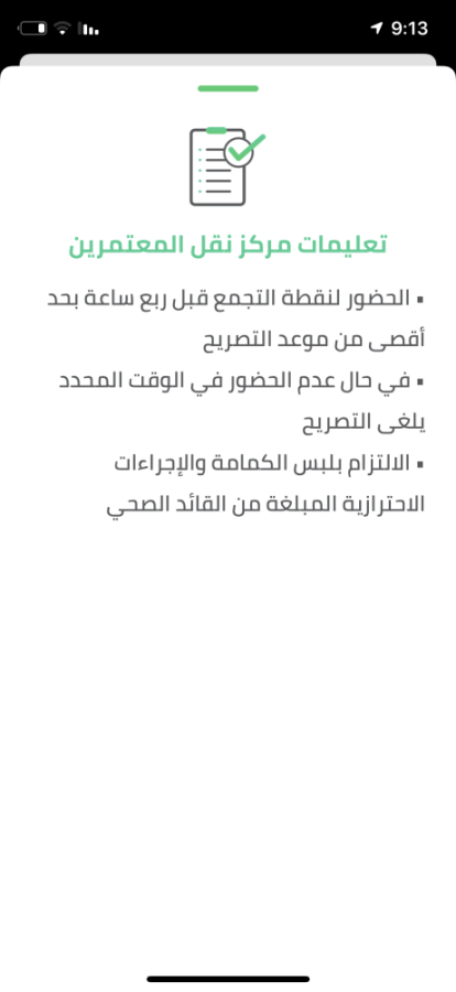 • الالتزام بلبس الكمامة والإجراءات الاحترازية المبلغة من القائد الصحي