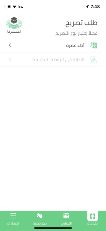 5. اختيار الخدمة ما بين أداء العمرة أو الصلاة في الروضة الشريفة
