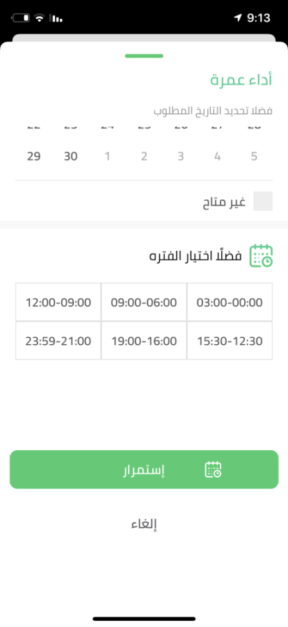 7. اختيار موعد متاح، وتحديد وقت الزيارة