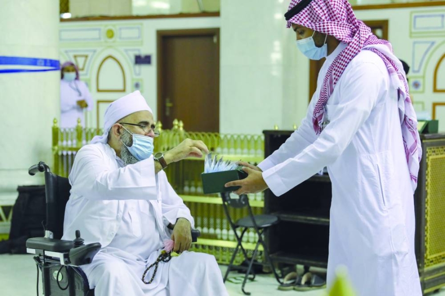 وتجند الإدارة العامة لشؤون الأشخاص من ذوي الإعاقة موظفين ملمين بأساليب وآليات التعامل والتواصل الخاصة بهم، للتعامل معهم وتوزيع الكمامات والمعقمات وعبوات مياه زمزم المخصصة للاستخدام الواحد خلال تواجدهم، والتعاون مع رجال الأمن برصد الحالات التي يلاحظ عليها ارتفاع في درجات الحرارة من خلال الكاميرات التي خصصتها الرئاسة العامة لقياس درجات حرارة زوار البيت العتيق وقاصديه، وإخلاء المصلى بعد كل صلاة لتكون عملية تعقيم المصلى والمداخل والسجاد والعربات الخاصة بنقلهم، وذلك لضمان سلامتهم وصحتهم خلال وجودهم في المسجد الحرام.
