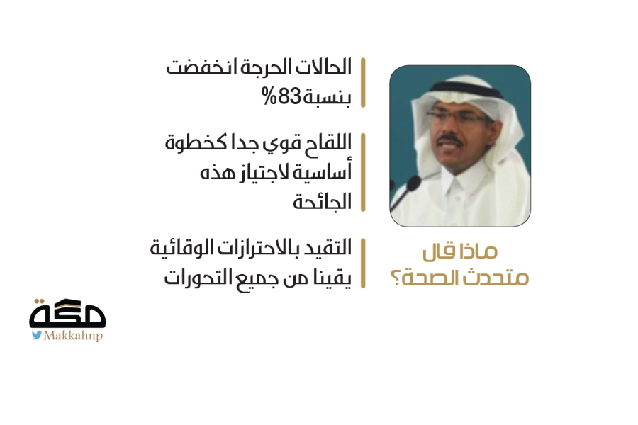 وقال «إن وضع كورونا في المملكة يتجه إلى المنحنيات الإيجابية، وما يرصد من معلومات وبيانات حول الفيروس المتحور يتماشى مع المعلومات الأولية، ولم يثبت أن هذا التحور مؤثر على شدة الفيروس أو أنه مؤثر بشكل سلبي على فعالية اللقاح».