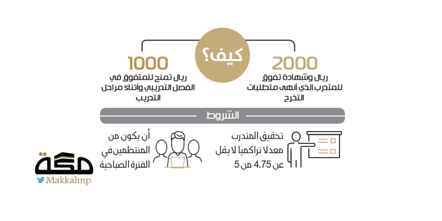 - 2000 ريال وشهادة تفوق للمتدرب الذي أنهى متطلبات التخرج