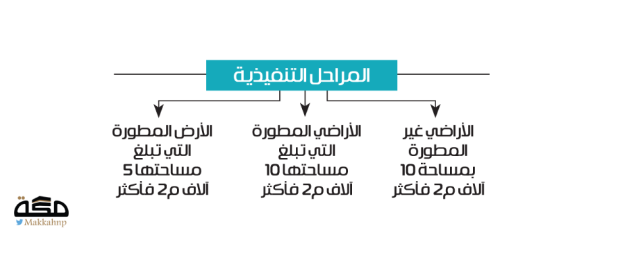 حددت اللائحة التنفيذية المعدلة لنظام رسوم الأراضي البيضاء، التي وافق عليها مجلس الوزراء 3 مراحل تنفيذية، وإمكانية تطبيق أكثر من مرحلة في مدينة واحدة، إضافة إلى قيام الوزارة بإجراء ومراجعة دورية للوضع في أي مدينة؛ لتقرير تطبيق الرسوم على الأراضي فيها أو تعليق التطبيق أو تطبيق مرحلة أو أكثر؛ لتجاوز مرحلة معينة والانتقال للمرحلة التالية في المدينة نفسها.