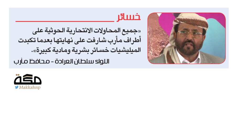 «جميع المحاولات الانتحارية الحوثية على أطراف مأرب شارفت على نهايتها بعدما تكبدت الميليشيات خسائر بشرية ومادية كبيرة».