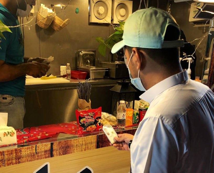 مراقب يعاين بطاقة صحية                                                                    (مكة)