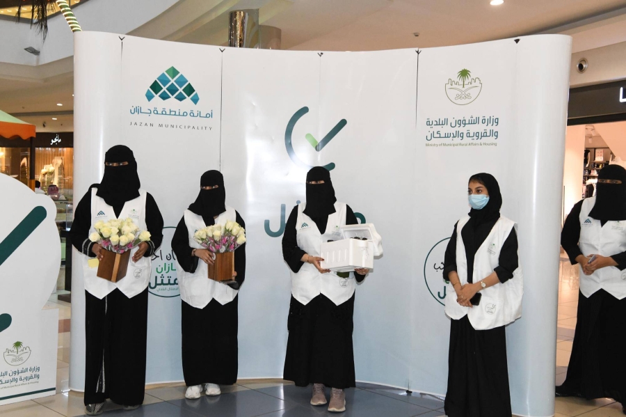 «ممتثل» ملصقات على متاجر جازان الملتزمة بالاحترازات