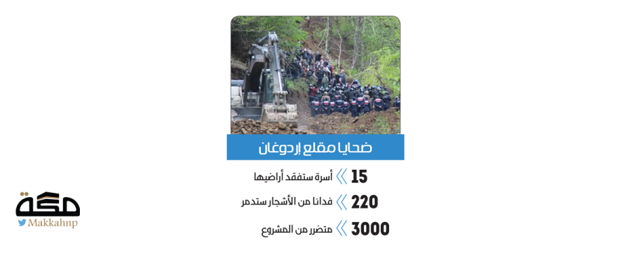 وأشارت إلى أنه في الوقت الذي يتعرض فيه إردوغان إلى ضغوط سياسية على الصعيد الوطني، شهدت محافظة ريزا على مدى أسابيع احتجاجات ضد خطط إردوغان لإنشاء مقلع يهدد بتدمير 220 فدانا من الأشجار التي تمثل موردا أساسيا لمنطقة إيكيزدير الريفية.