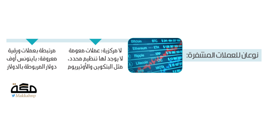 - لا مركزية: عملات معومة لا يوجد لها تنظيم محدد، مثل البتكوين والأوثيريوم