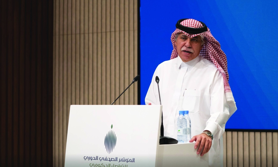ماجد القصبي خلال مؤتمر التواصل الحكومي أمس   (مكة)