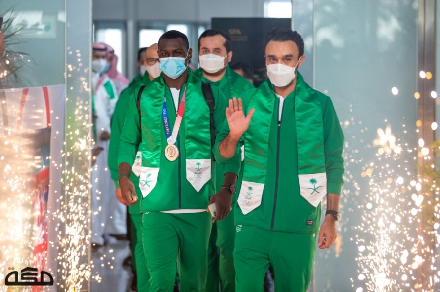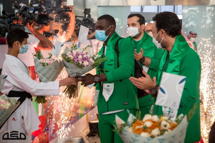 وكان في استقبال البعثة، نيابة عن أمير منطقة مكة المكرمة، محافظ جدة المكلف الأمير سعود بن جلوي، وعدد من مسؤولي وزارة الرياضة، وأعضاء مجلس إدارة اللجنة الأولمبية السعودية، ووسائل الإعلام.