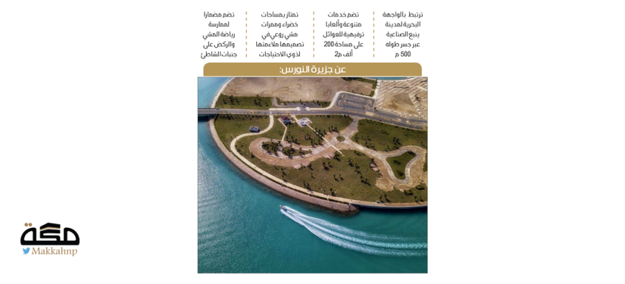 - ترتبط بالواجهة البحرية لمدينة ينبع الصناعية عبر جسر طوله 500 م