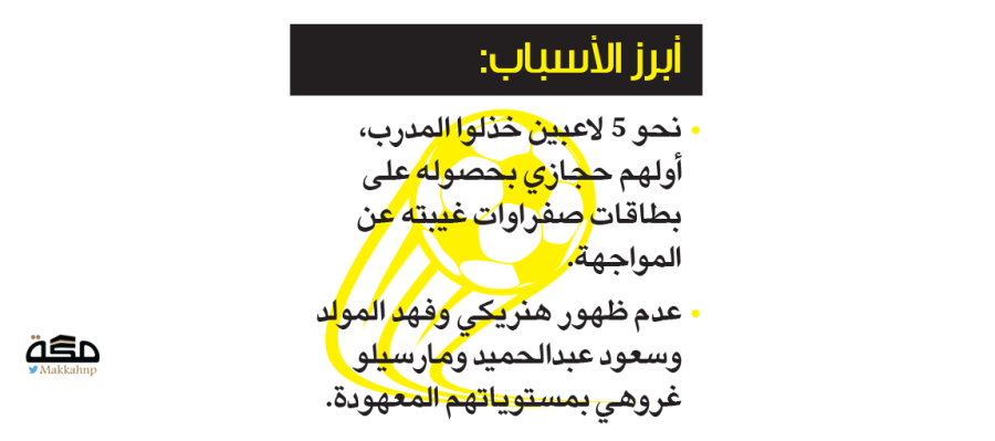 - عدم ظهور هنريكي وفهد المولد وسعود عبدالحميد ومارسيلو غروهي بمستوياتهم المعهودة.