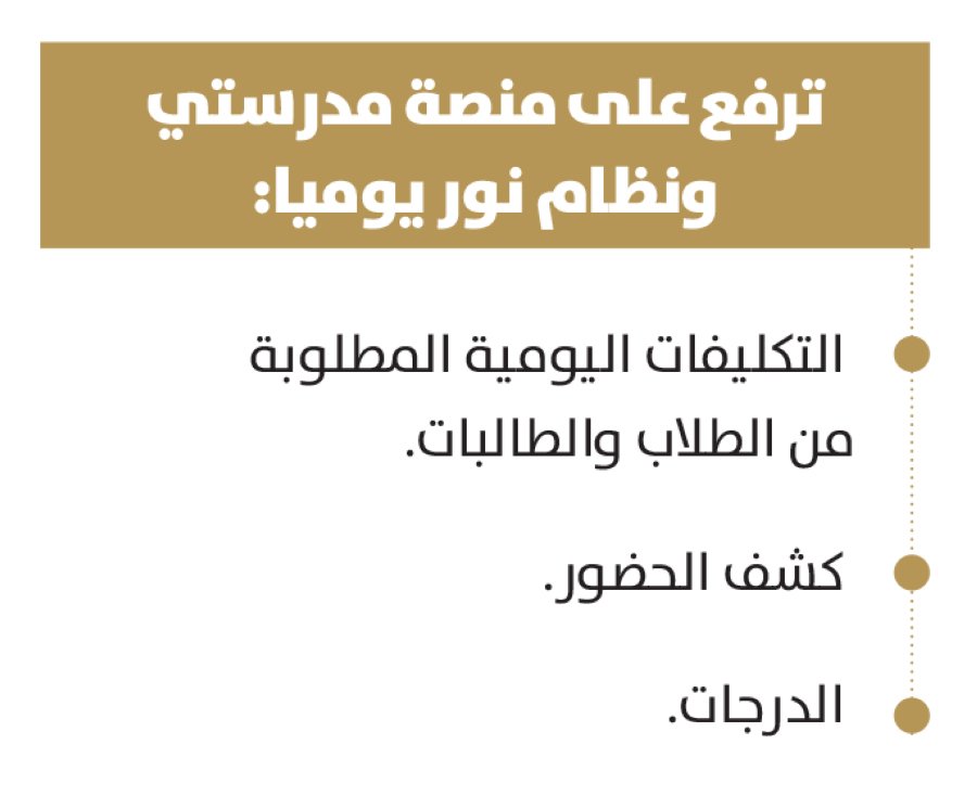 ترفع على منصة مدرستي ونظام نور يوميا: