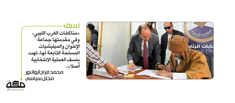 «مناكفات الغرب الليبي، وفي مقدمتها جماعة الإخوان والميليشيات المسلحة التابعة لها، تهدد بنسف العملية الانتخابية أصلا».