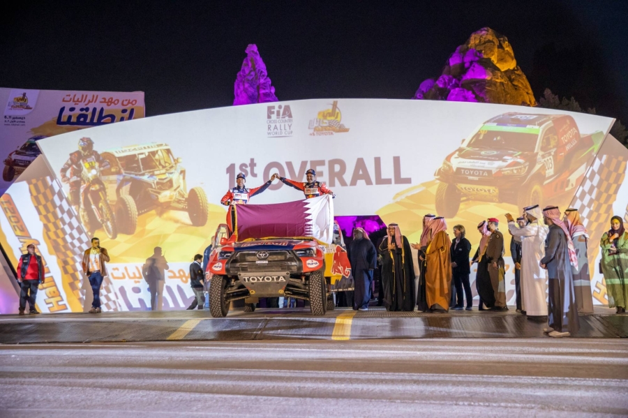 توج أمير منطقة حائل رئيس هيئة تطوير المنطقة الأمير عبدالعزيز بن سعد بن عبدالعزيز، المتسابق القطري ناصر العطية بلقب رالي حائل تويوتا الدولي2021 ولقبه الخامس في كأس العالم للراليات الصحراوية الطويلة من الاتحاد الدولي للسيارات «فيا- كروس كنتري»، بحضور رئيس الاتحاد السعودي للسيارات والدراجات النارية الأمير خالد بن سلطان، ونائب أمير منطقة حائل فيصل بن فهد بن مقرن.