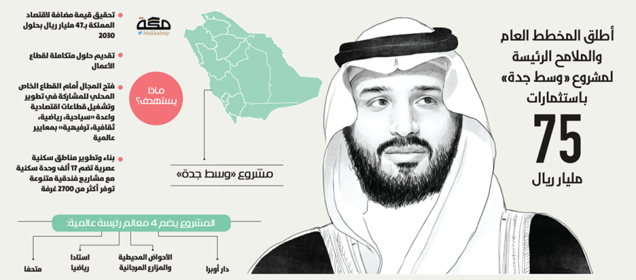 - يستهدف تطوير مشروع وسط جدة تحقيق قيمة مضافة لاقتصاد المملكة تقدر بنحو 47 مليار ريال بحلول 2030
