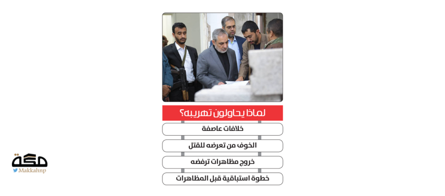 فيما تتناثر الأنباء عن خلاف حاد بين جنرال الحرس الثوري الإيراني حسن إيرلو وميليشيات الحوثي الإرهابية، توقع محللون أن تكون محاولة تهريب حاكم صنعاء وسفير الملالي لدى الانقلابيين إلى طهران، بهدف الخوف على حياته وإبعاده عن غضب متوقع في الشارع اليمني، بعدما تحول إلى «ورقة محروقة».