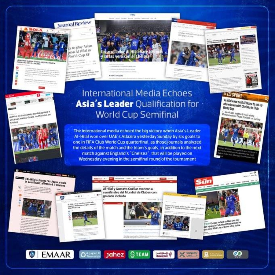 لفت أداء الهلال أمام الجزيرة الإماراتي في بطولة كأس العالم للأندية المقامة حاليا في الإمارات، والذي توجه بالفوز 6 /1، وسائل إعلام أجنبية تغنت بالحضور اللافت لبطل آسيا، من بينها صحيفة Marca الإسبانية التي أبرزت الفوز العريض وبحثت في أدق تفاصيله.