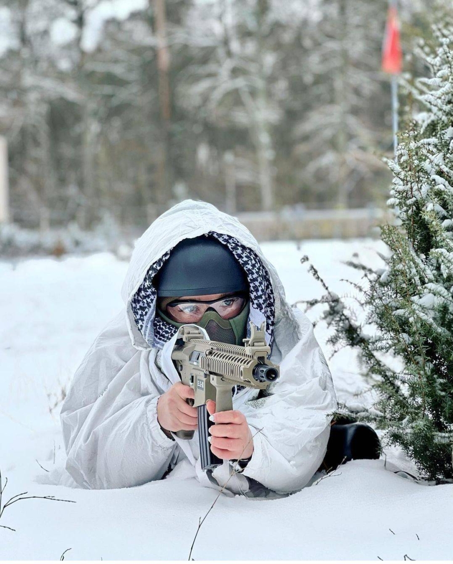 ونشرت صورها بالزي العسكري وهي تحمل السلاح، وقالت إنها تتعهد بالمخاطرة بحياتها من أجل الدفاع عن بلادها أوكرانيا ضد غزو بوتين.