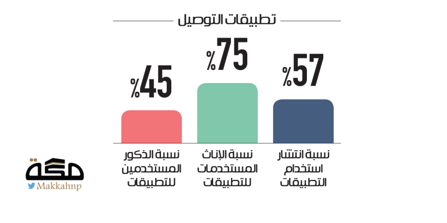 45 % نسبة الذكور المستخدمين للتطبيقات