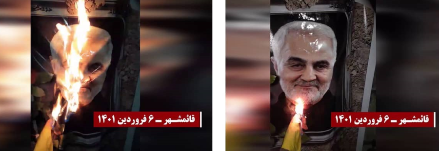 أحرق الإيرانيون صور المرشد علي خامئنئي وقائد فيلق القدس السابق قاسم سليماني ومؤسس النظام آية الله الخميني في 12 مدينة، ردا على القمع الذي يواجهونه من الحرس الثوري والباستيج وأذرع بطش النظام بشكل يومي.