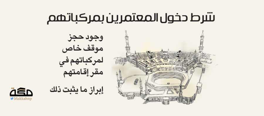 وأكدت الإدارة العامة للمرور أنه لا توجد رسوم على المواقف المخصصة لوقوف مركبات المعتمرين المصرح لهم وأنها خدمة مجانية. كما حذرت من القدوم إلى مكة لأداء العمرة دون الحصول على تصريح، وأن غرامة المخالف تصل إلى 10 آلاف ريال.