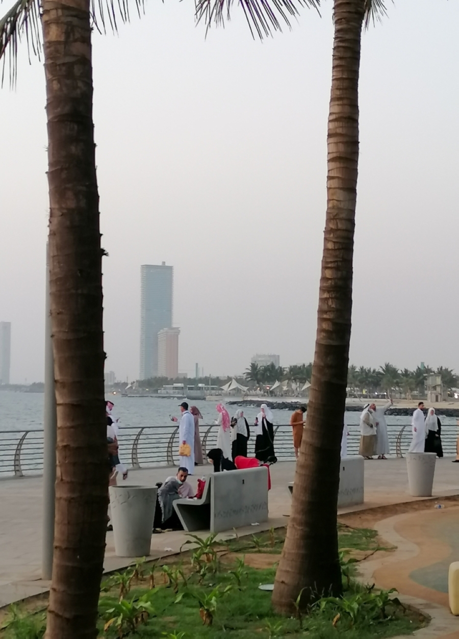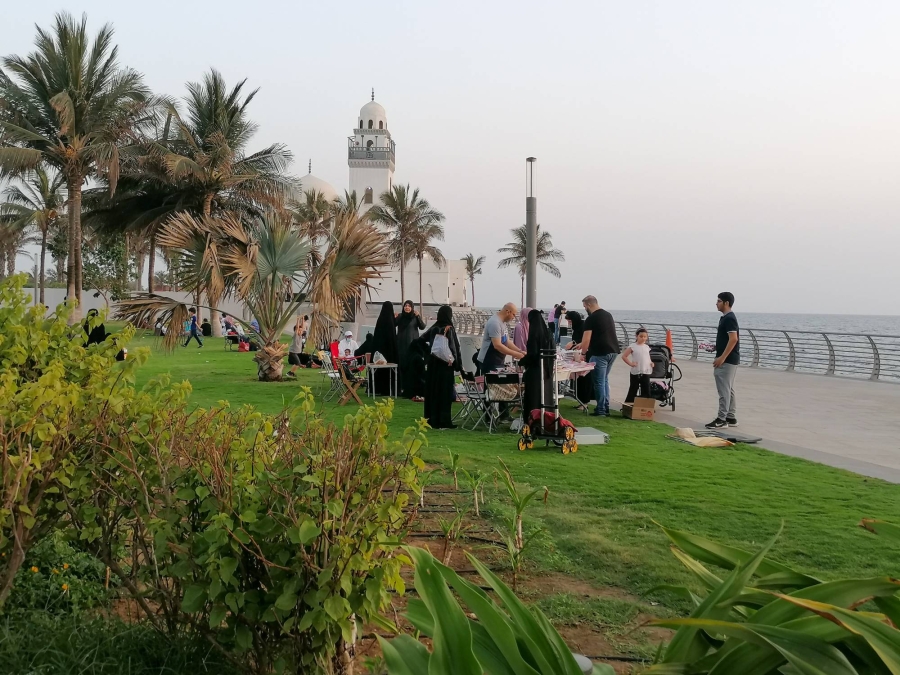 أهالي جدة وزوارها يستمتعون بالأجواء في كورنيش جدة (أنس الحارثي)