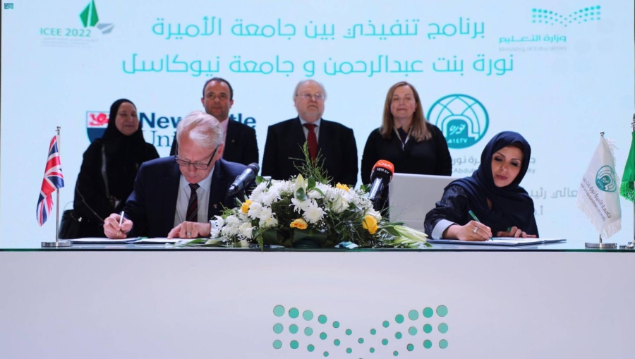 أبرمت جامعة الأميرة نورة بنت عبدالرحمن 11 مذكرة تعاون وتفاهم وبرامج تنفيذية مع عدد من الجامعات والمؤسسات المحلية والعالمية، في المؤتمر والمعرض الدولي للتعليم المقام بمركز الرياض الدولي للمؤتمرات والمعارض، حيث وقعت رئيسة الجامعة الدكتورة إيناس العيسى مذكرات لبرامج تنفيذية مع «جامعة دندي»، و»جامعة غلاسكو»، و»جامعة إكسيتر»، و»جامعة ستر إثكلايد»، و»جامعة نيوكاسل»، إضافة إلى توقيع عقد خدمات مع «جامعة سوانزي» لتقديم برنامج ماجستير العلوم في الطاقة والابتكار.