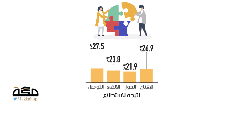 كشف استطلاع للرأي أجرته مؤسسة «مسك المجتمع» عن أن التواصل جاء في مقدمة المهارات التي يحتاجها الشباب لصناعة التأثير الإيجابي في المجتمع بنسبة تزيد على 27%، تليها مهارات أخرى كالإقناع والإلقاء والحوار.