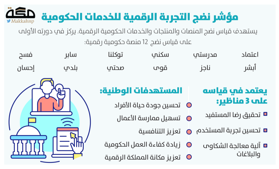 ولفت إلى أن المؤشر يعتمد في قياسه لنضج المنصات الحكومية على ثلاثة مناظير أساسية وهي تحقيق رضا المستفيد وتحسين تجربة المستخدم وآلية معالجة الشكاوى والبلاغات.