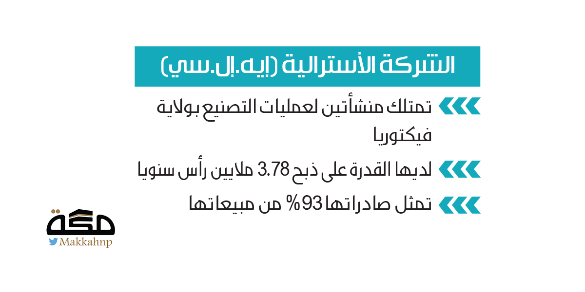 وتعد شركة أي إل سي من أكبر منتجي اللحوم في أستراليا، إذ تدير مصنعين لإنتاج لحوم الضأن في ولاية فيكتوريا، وتصدرها إلى نحو 70 دولة حول العالم.